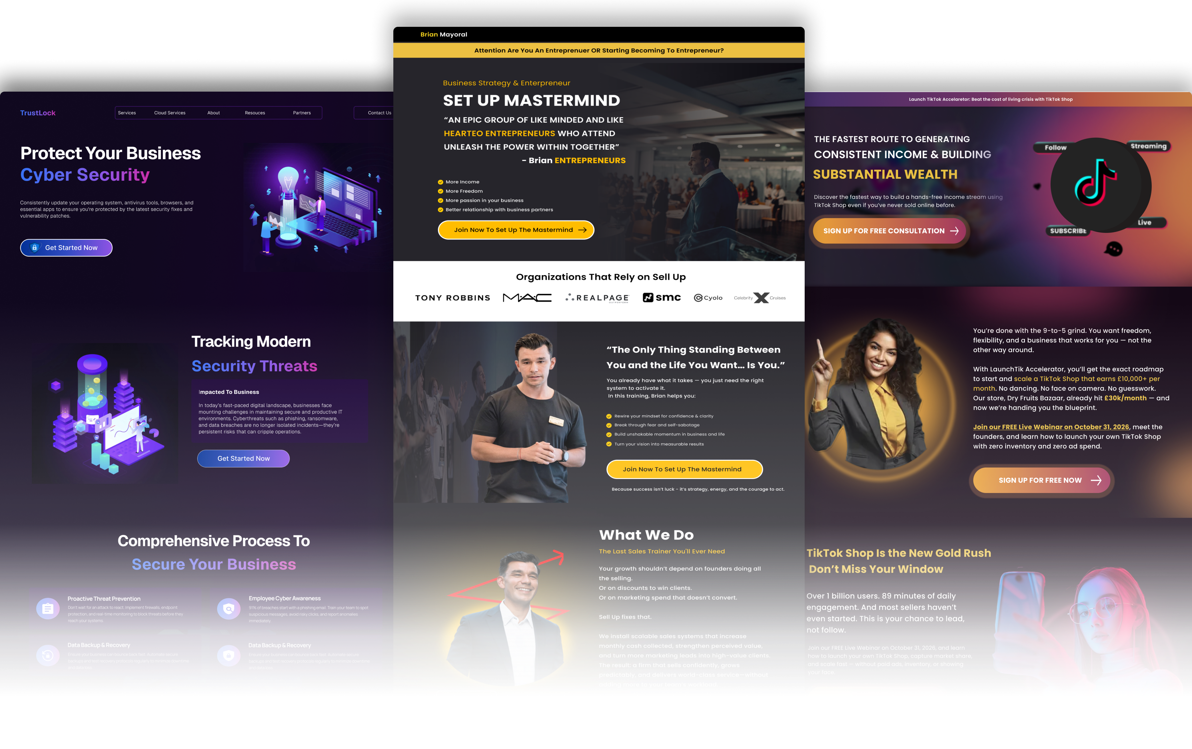 We can also develop in popular software like ClickFunnels (CF1.0 or CF2.0), GoHighLevel (GHL), WordPress Elementor or WooCommerce or ThriveThemes. We also can do online store for Shopify.